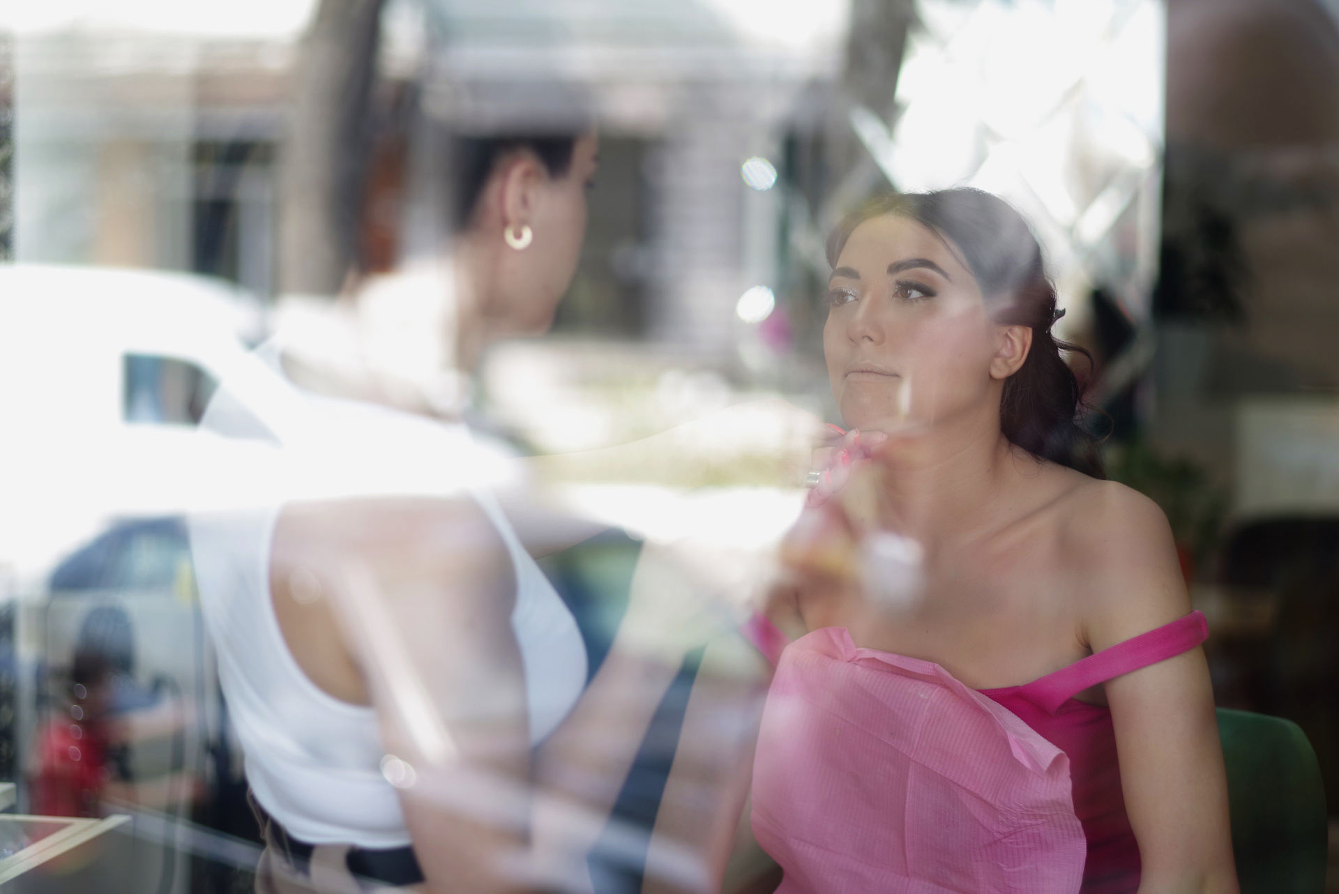 ლამაზი გოგოები გვერდით მაგიდასთან