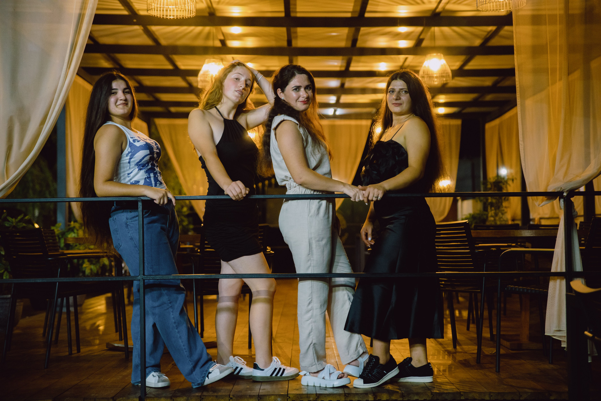 ლამაზი გოგოები გვერდით მაგიდასთან